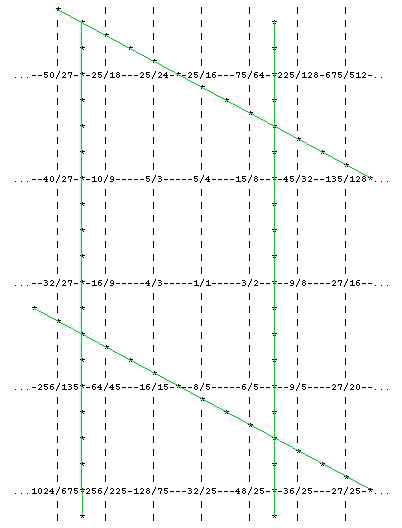 If we add a few more notes related by fifths to those adjoining 1/1, we soon